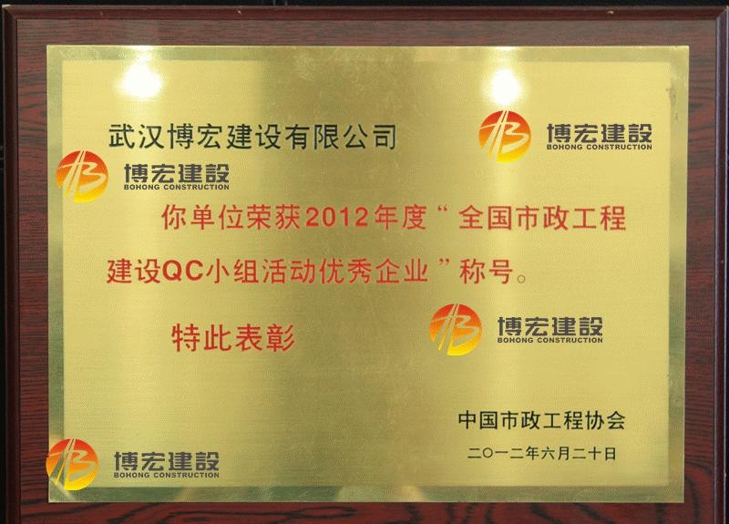 2012年度全國市政工程建設(shè)QC小組活動(dòng)優(yōu)秀企業(yè)