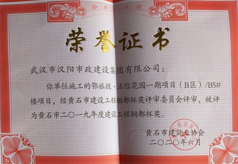2019年度建設(shè)工程銅都杯獎(鄂旅投·正信花園一期項目(B區(qū))B6#樓項目