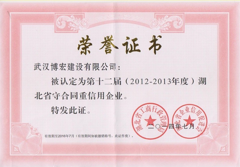 武漢地區(qū)建筑業(yè)企業(yè)信用等級證書
