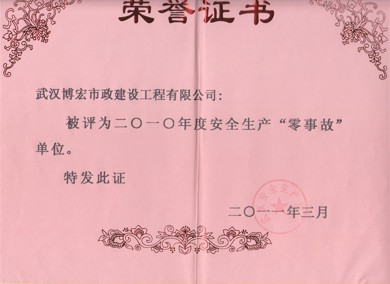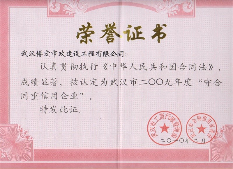 2010-2011年度武漢地區(qū)市政企業(yè)信譽等級證書