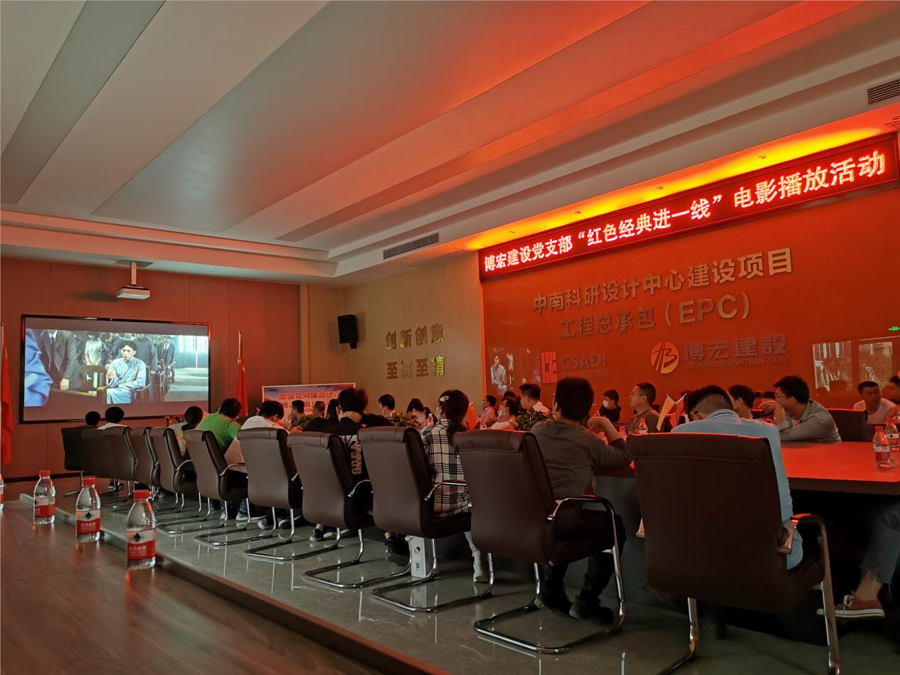 5月7日晚6點(diǎn),漢陽(yáng)市政博宏公司黨支部開(kāi)展“建黨100年,光影映初心”電影播放活動(dòng),將紅色電影帶進(jìn)公司中南科研設(shè)計(jì)中心項(xiàng)目部,50余位黨員群眾共同觀看“建國(guó)三部曲”系列電影之《建軍大業(yè)》,一起追憶紅色故事。