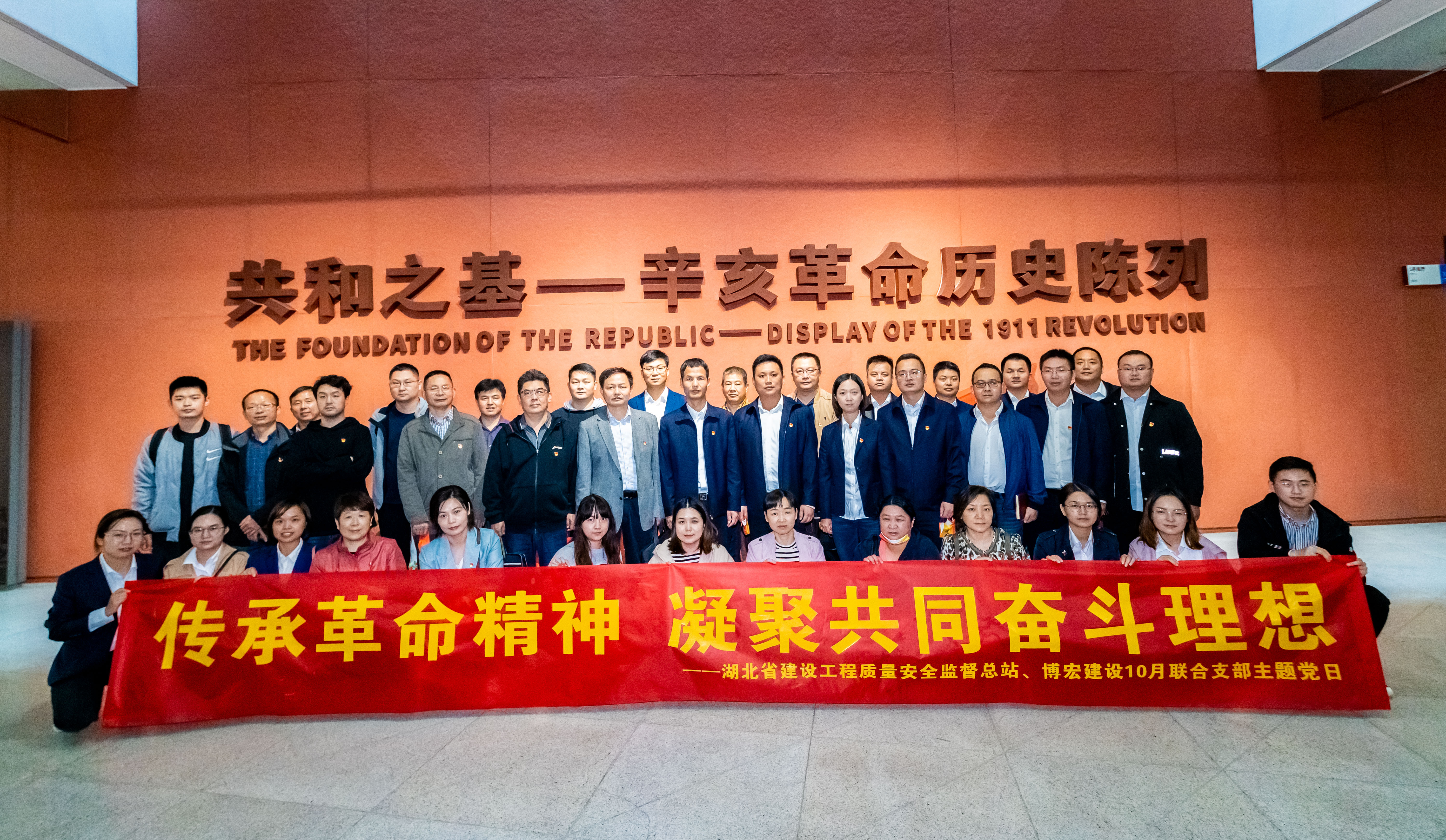 10月14日,湖北省建設(shè)工程質(zhì)量安全監(jiān)督總站(簡(jiǎn)稱(chēng)“省質(zhì)安總站”)與博宏建設(shè)聯(lián)合開(kāi)展“傳承革命精神,凝聚共同奮斗理想”10月主題黨日活動(dòng)。省質(zhì)安總站黨支部書(shū)記、站長(zhǎng)楊碧華、副站長(zhǎng)丁建平、副站長(zhǎng)徐建軍,博宏建設(shè)黨支部書(shū)記、董事長(zhǎng)鄒勇,總經(jīng)理蘇琦、黨支部副書(shū)記郭一清、副總經(jīng)理辛桂華等共計(jì)40名黨員同志參與此次活動(dòng)。