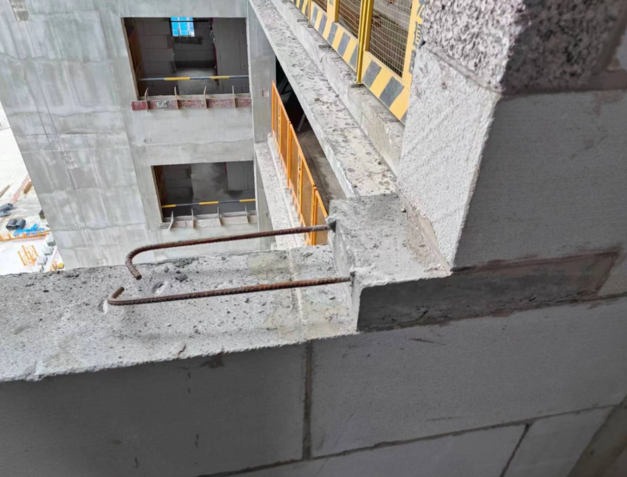 為保證各工序穿插施工的正常運行,在進(jìn)行外墻砌體穿插施工時,常規(guī)外墻砌體施工工序為先砌筑至窗臺位置,待支模澆筑窗臺壓頂完成并拆模后才可以繼續(xù)砌體砌筑至頂。因主體結(jié)構(gòu)每層施工時間較短,如按正常工序依次施工,無法滿足外墻砌體、外抹灰工序的穿插施工要求,且工人砌體施工時易在壓頂位置留缺口,直接向上砌筑至頂,形成工序倒置,留下窗臺壓頂后澆筑的滲漏隱患。