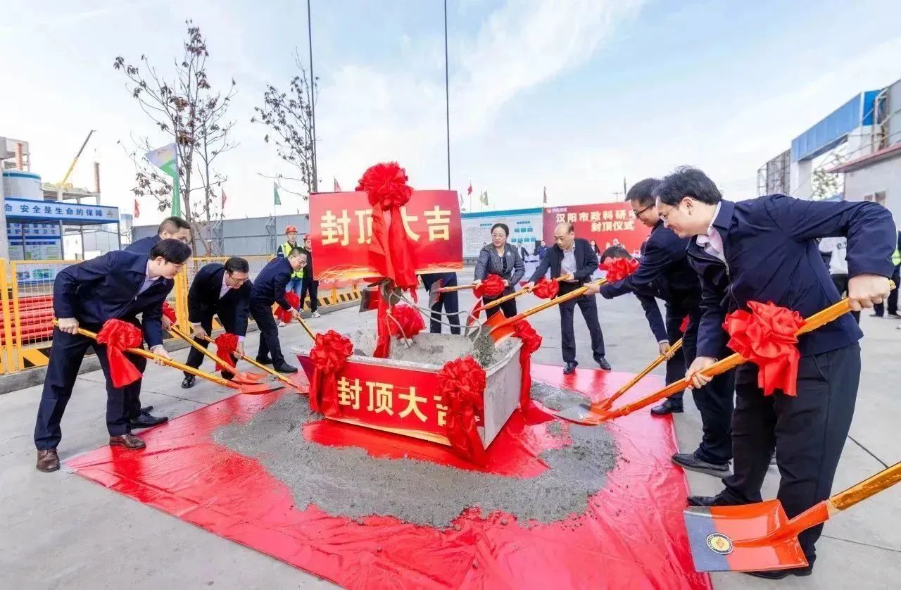 2023年11月8日上午,漢陽市政科研中心封頂儀式在項(xiàng)目現(xiàn)場隆重舉行。漢陽區(qū)國資局黨組書記、局長嚴(yán)俊,漢陽區(qū)建設(shè)局黨組成員、漢陽區(qū)建管站站長王晟,漢陽市政集團(tuán)黨委副書記、副董事長虞志鵬,總工程師荊武及相關(guān)部門負(fù)責(zé)人,兄弟單位主要領(lǐng)導(dǎo),博宏建設(shè)集團(tuán)黨委書記、董事長、總經(jīng)理鄒勇,常務(wù)副總經(jīng)理奚雷等相關(guān)領(lǐng)導(dǎo),以及項(xiàng)目一線建設(shè)者共計(jì)60余人共同見證項(xiàng)目封頂。